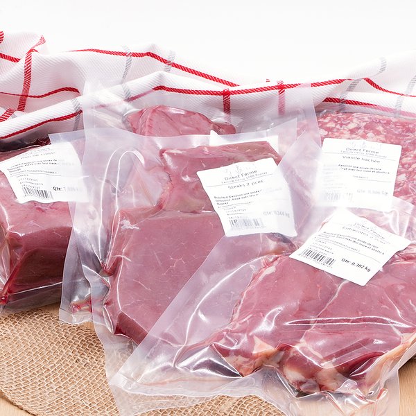 La viande est soigneusement emballée sous-vide, ce qui garantit sa fraîcheur. Selon les morceaux, elle peut être conservée entre 6 et 8 jours au réfrigérateur.